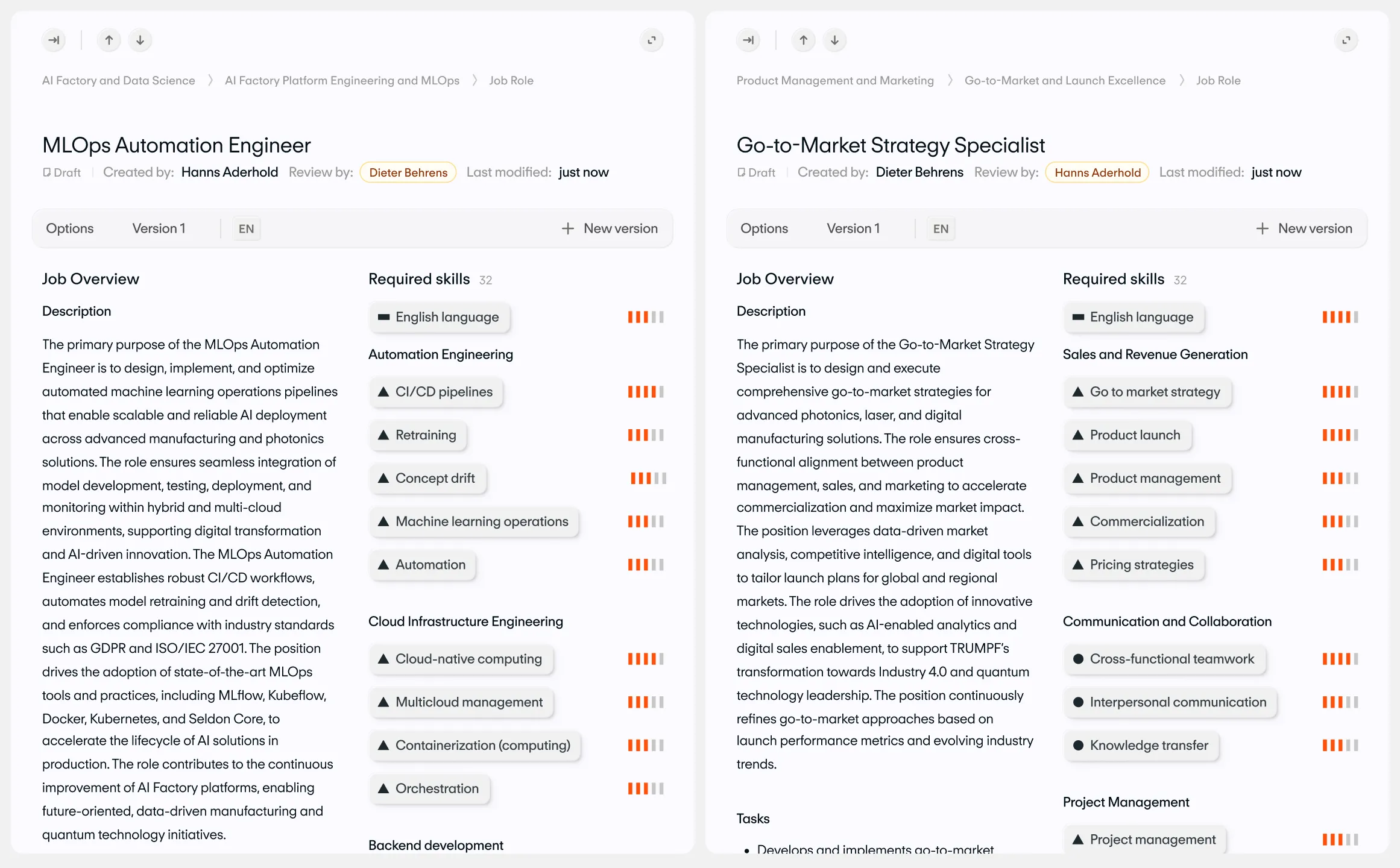 Create compliance-ready job profiles.
