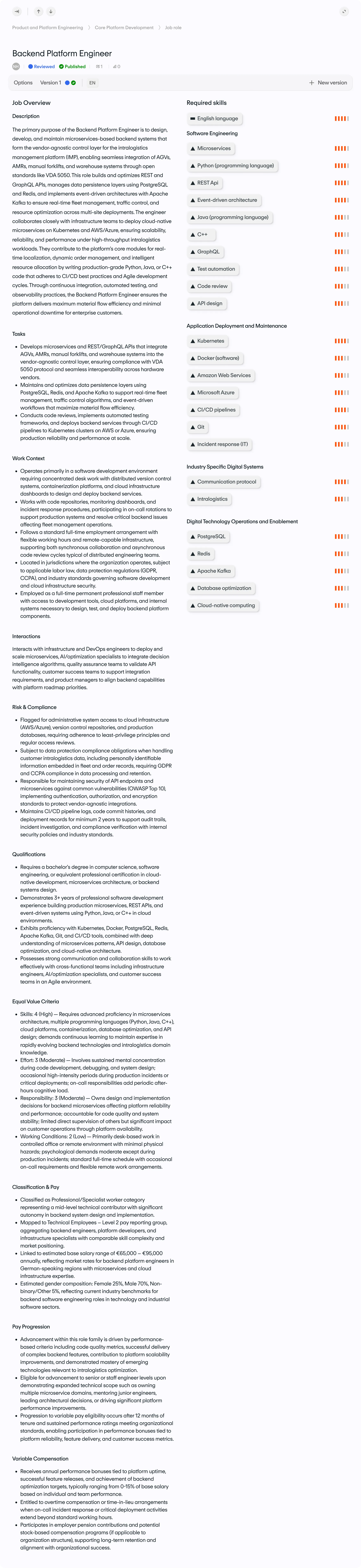 You’ll see how your jobs, levels, and skills would be structured using neutral, explainable criteria — the same way they would be reviewed in a pay transparency context.